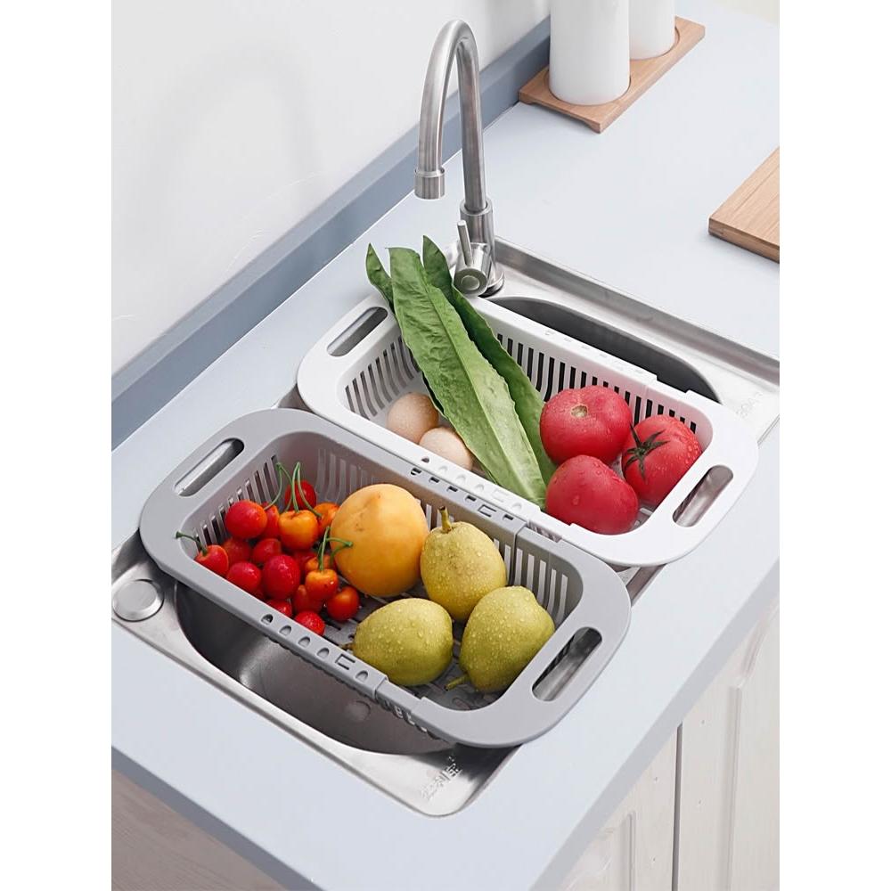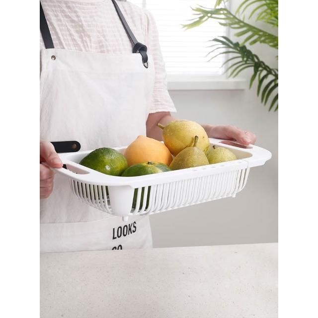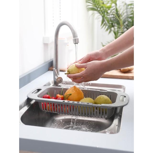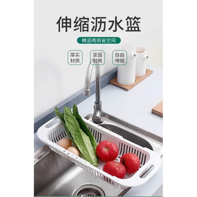 可伸縮瀝水籃子洗菜盆淘菜盆塑料水果收納筐廚房水槽洗碗池置物架