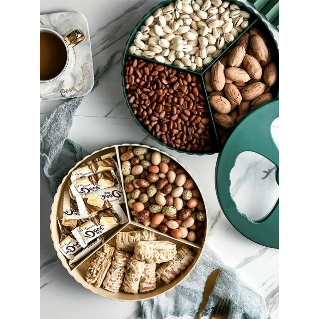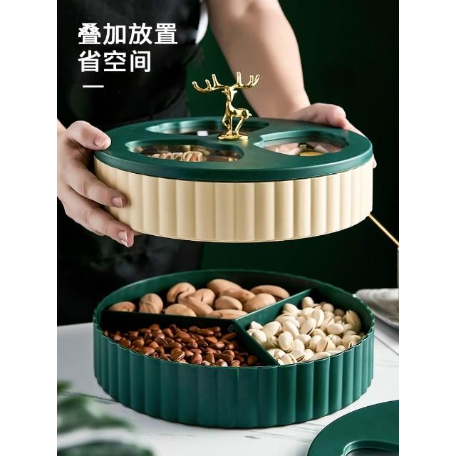 輕奢旋轉果盤家用客廳創意分格帶蓋乾果盒糖果瓜子堅果零食收納盒