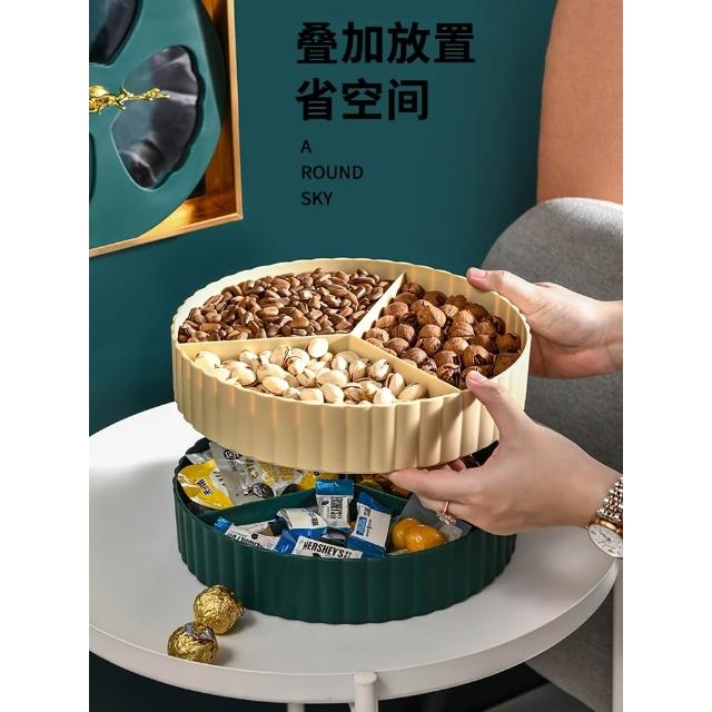 - 輕奢旋轉果盤家用客廳創意分格帶