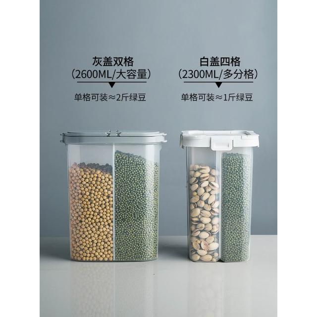 分格密封罐儲物盒廚房分類透明穀物雜糧儲物罐家用食品級豆類防潮
