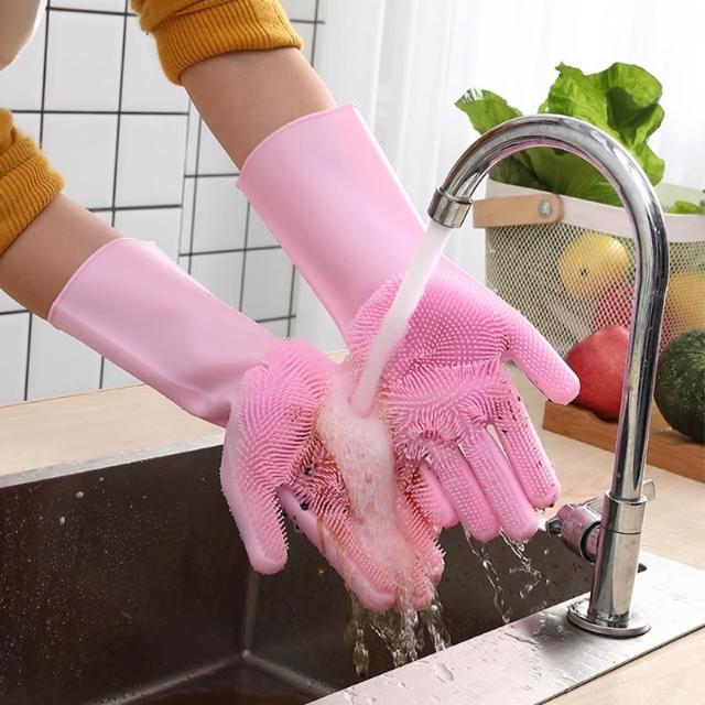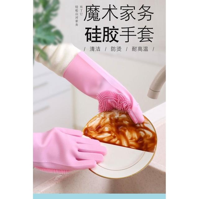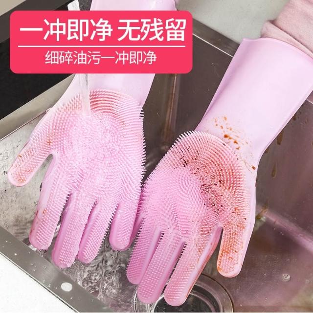 橡膠洗碗手套女耐用型防水廚房膠皮刷碗神器家用家務硅膠塑膠洗衣