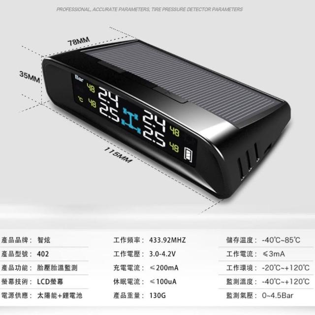 智炫 太陽能汽車胎壓偵測器 胎壓監測器