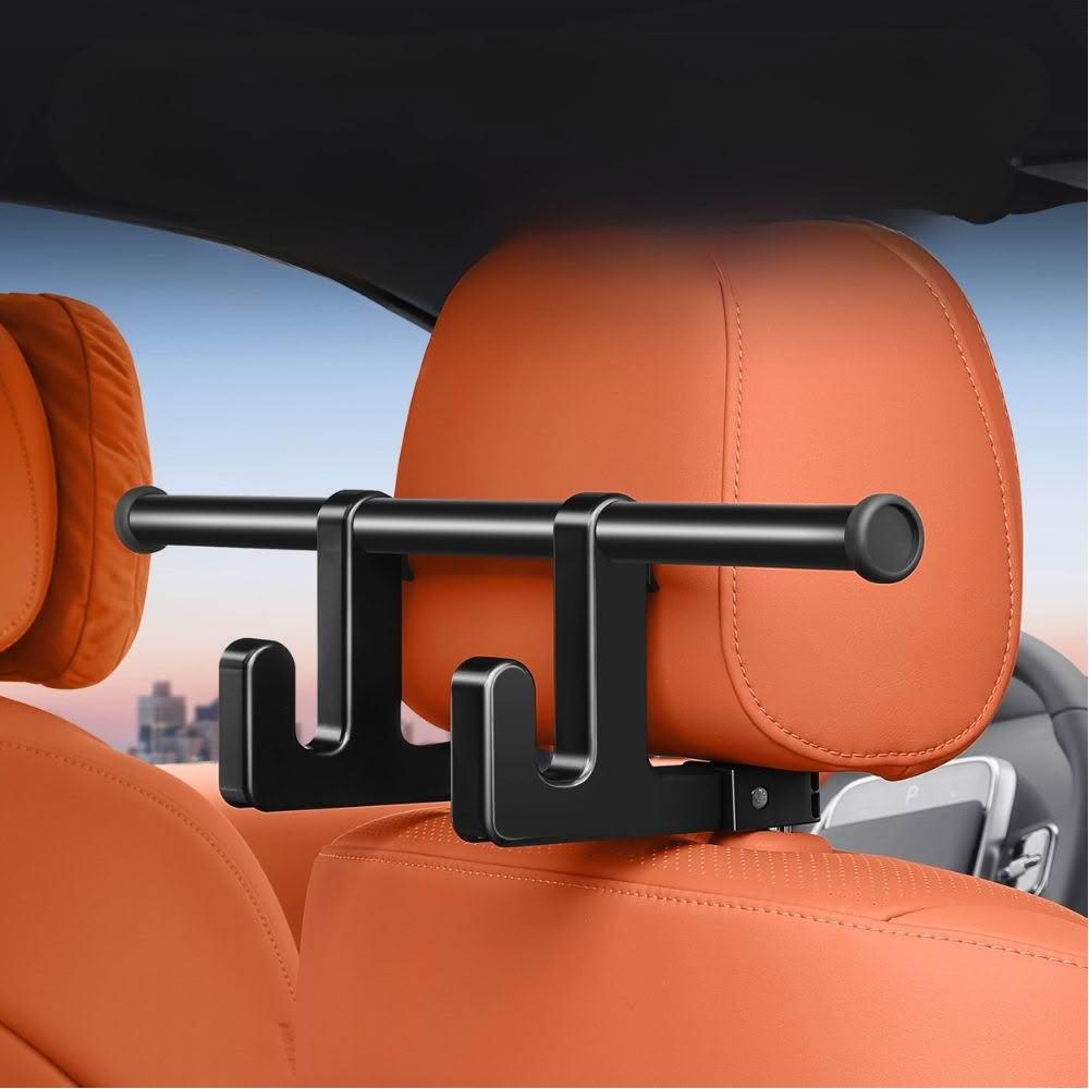 👔車載多功能衣架 頭枕桿卡扣式 不鏽鋼橫桿/強承重 雙掛鉤設計 出差/自駕遊西裝外套防皺收納 車用衣架 車用掛勾