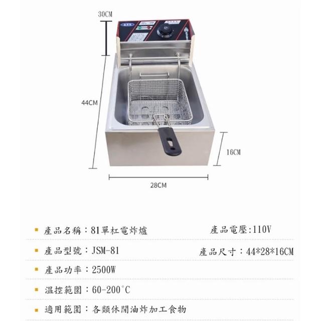 諾必行6L不鏽鋼單缸電炸爐 油炸機 110V油炸爐 不鏽鋼油炸鍋 電炸鍋 關東煮機 商用免檢