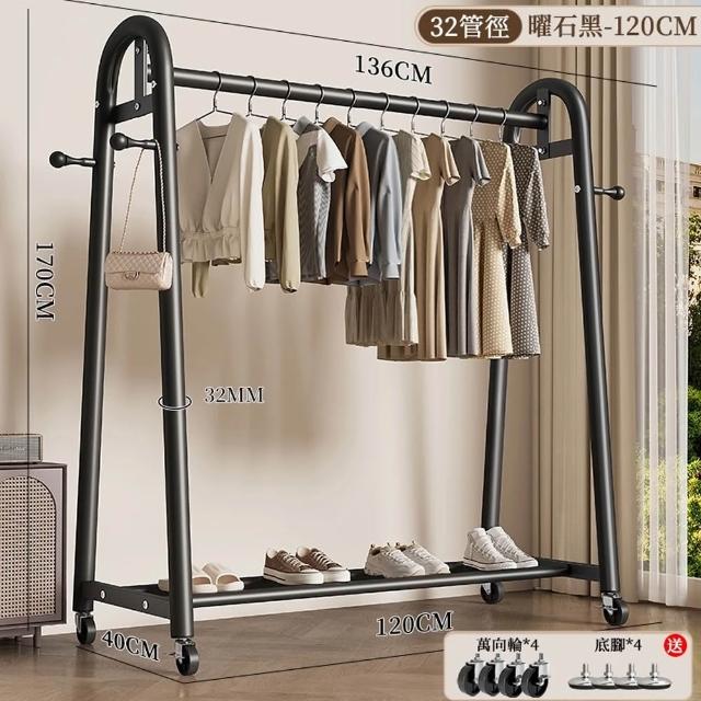 諾必行衣帽架 落地衣架 掛衣架【巨粗32管】可移動晾衣架 衣帽架 衣架組 送輪子+底腳