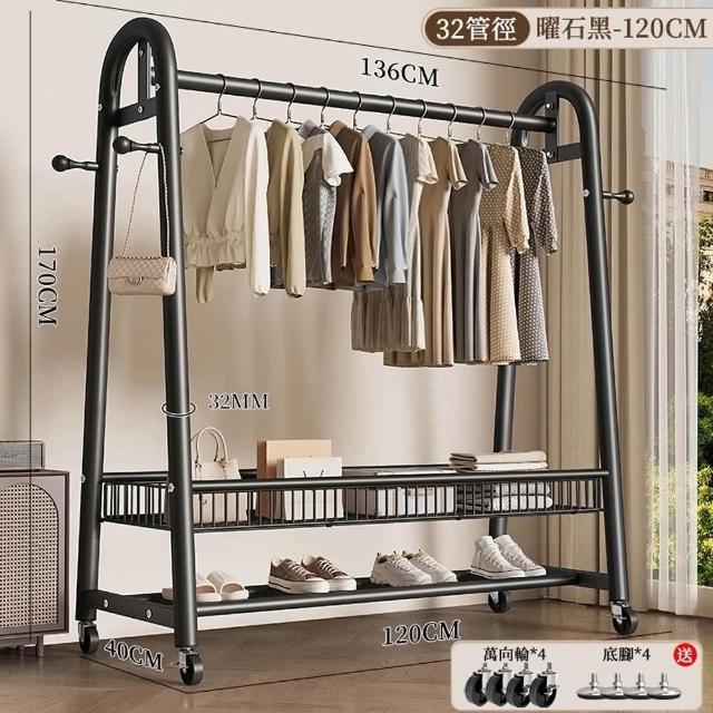 諾必行衣帽架 落地衣架 掛衣架【巨粗32管】可移動晾衣架 衣帽架 衣架組 送輪子+底腳