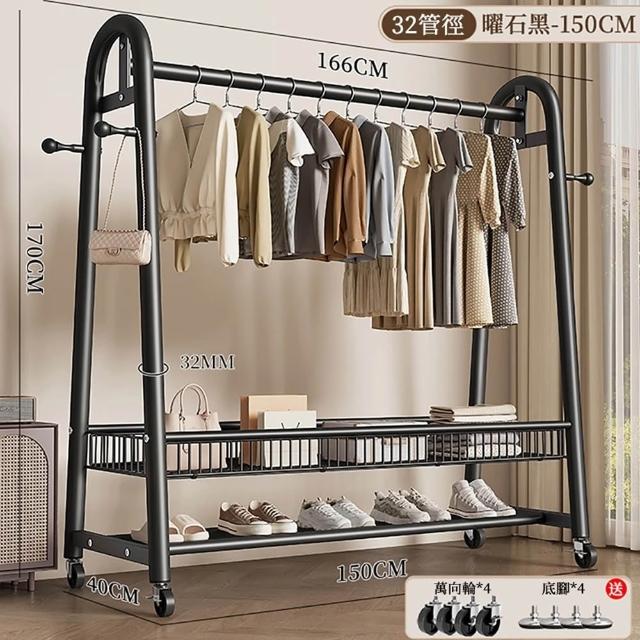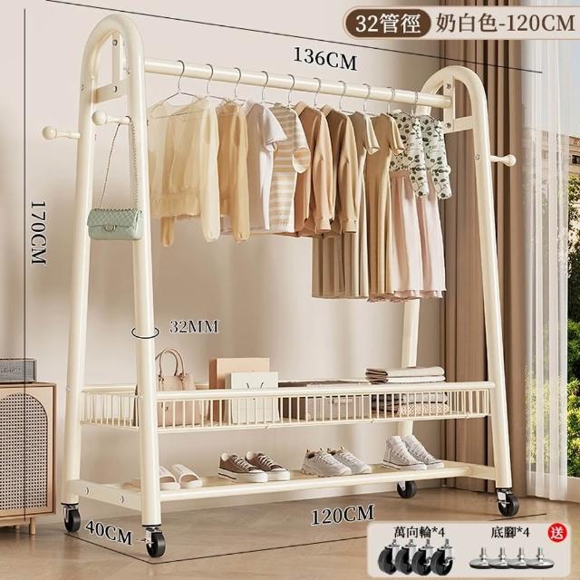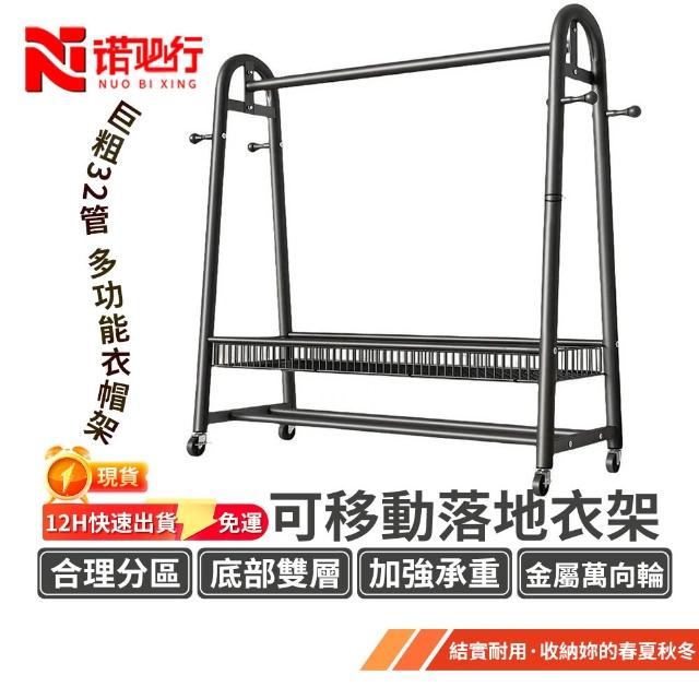 諾必行衣帽架 落地衣架 掛衣架【巨粗32管】可移動晾衣架 衣帽架 衣架組 送輪子+底腳