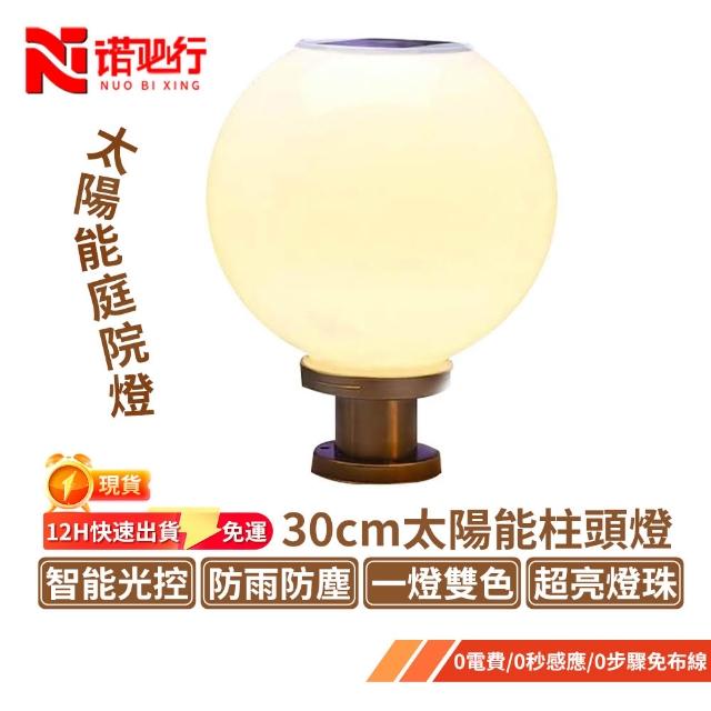 諾必行30cm太陽能柱頭燈 圓形大門燈 庭院門口柱燈 圍墻照明圓球燈 別墅大門燈