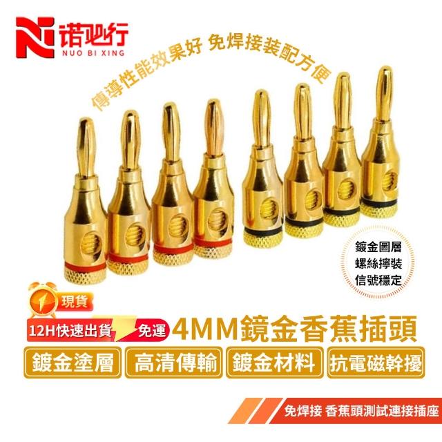 諾必行一對4MM鍍金香蕉插頭 免焊接音箱喇叭線 香蕉頭測試連接插座