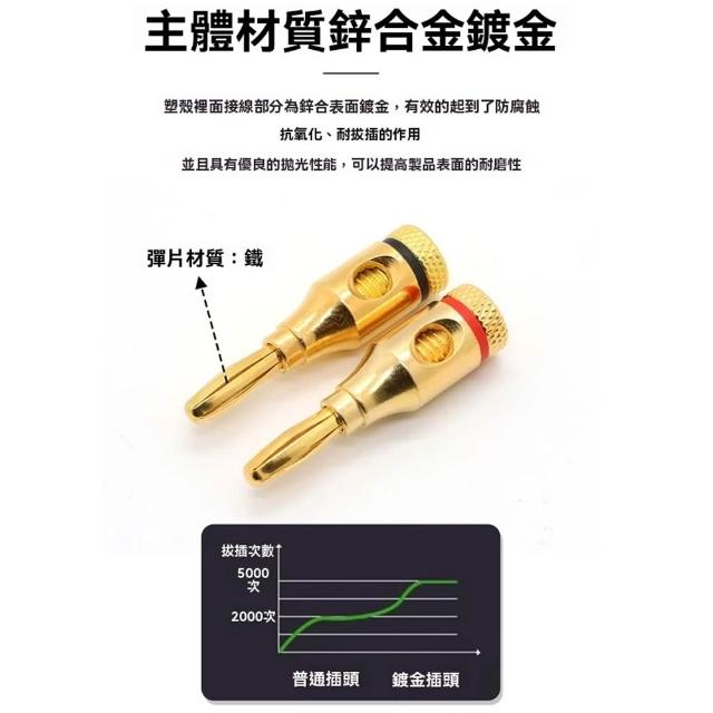 諾必行一對4MM鍍金香蕉插頭 免焊接音箱喇叭線 香蕉頭測試連接插座