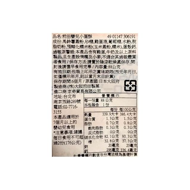前田製果+爆買日本+ 大阪前田 MAEDA 7個月以上 元氣小蛋酥 乳酸菌蛋酥 嬰兒蛋酥 嬰兒小饅頭 幼兒餅乾