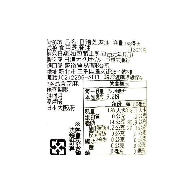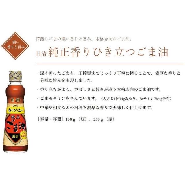 NISSIN 日清+爆買日本+ 芝麻油 130ml 純正胡麻油 純正芝麻油 素食可 日本芝麻油 餃子沾醬 日本進口