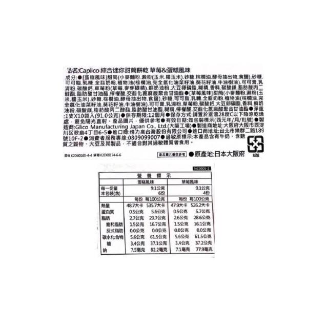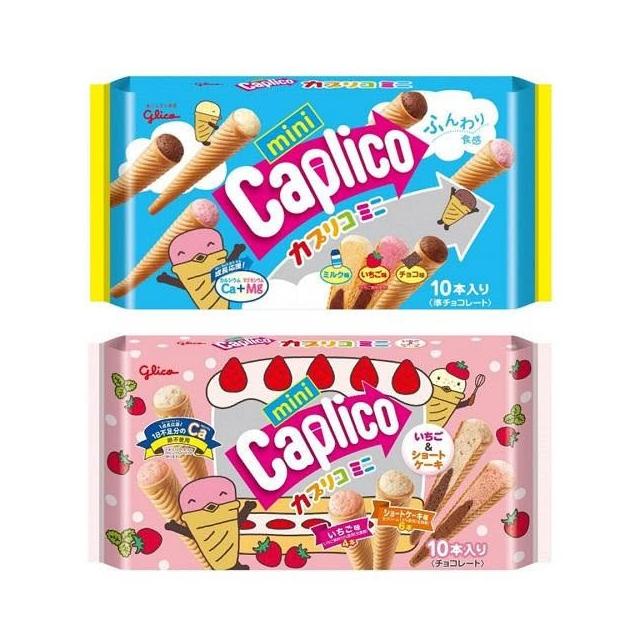 Glico 格力高+爆買日本+固力果 Caplico 綜合迷你甜筒餅乾 10入 牛奶/草莓/可可 冰淇淋三兄弟