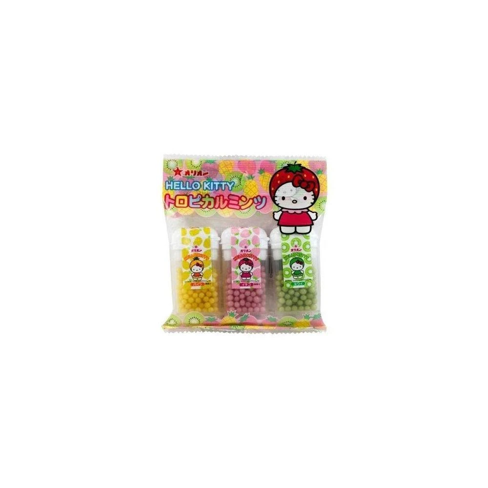 ORION 奧利恩+爆買日本+ Hello Kitty 迷你3入糖 熱帶水果糖粒 鳳梨/草莓/奇異果味 三麗鷗 日本糖果