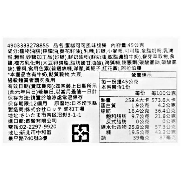 Lotte 樂天LOTTE 樂天 生日蛋糕風味可可脆餅 45g 可可塊 白巧克力 CRUNKY 期間限定 日本原裝 日本進口