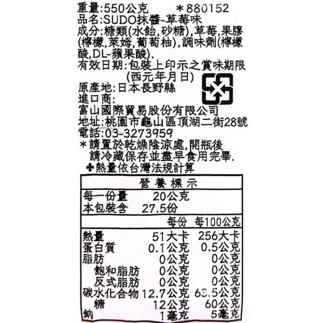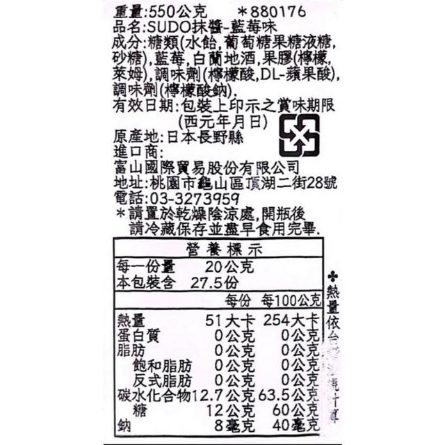 +爆買日本+ SUDO 大容量 抹醬 草莓/藍莓/柑橘風味 果醬 550g 玻璃瓶裝 吐司麵包抹醬 日本原裝