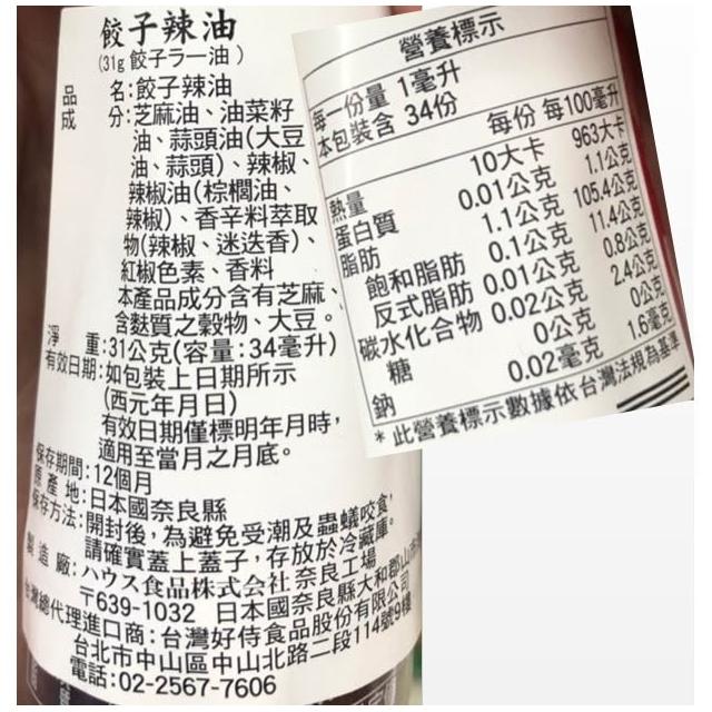 HOUSE 好侍+爆買日本+ 辣油 31g 餃子辣油/辣椒辣油/唐辛子 辣椒油 調味油 調味醬 沾醬 沾拌飯 日本進口
