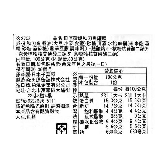 +爆買日本+ TAWARA 田原 沙丁魚/秋刀魚 即食罐頭 100g 蒲燒 醬油 味噌 魚罐頭 拜拜罐頭 日本原裝進口