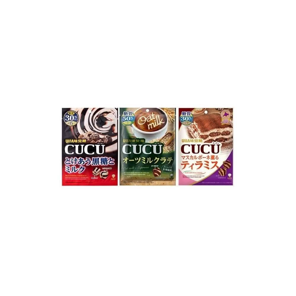 UHA 味覺糖+爆買日本+ CUCU 黑糖牛奶糖/燕麥拿鐵/提拉米蘇糖 糖值減量 含食物纖維 骰子糖