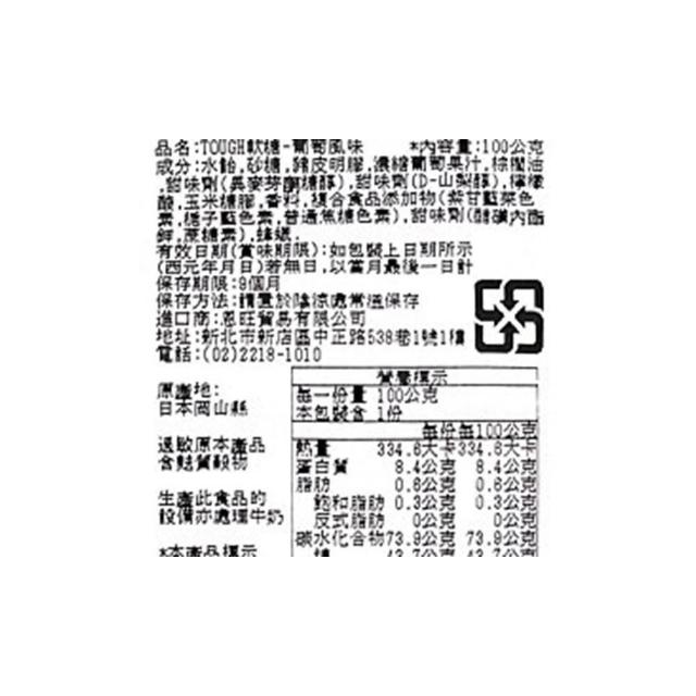 Kabaya 卡巴+爆買日本+ TOUGH 超彈力軟糖 檸檬/葡萄/麝香葡萄/綜合汽水/梅子/白桃風味 高彈力