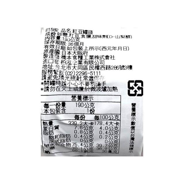 加藤產業+爆買日本+ 橋本食糧 北海道產紅豆餡 紅豆罐 190g 紅豆 小豆 低糖 紅豆餡 抹醬 配料 罐頭 日本必買 日本原裝