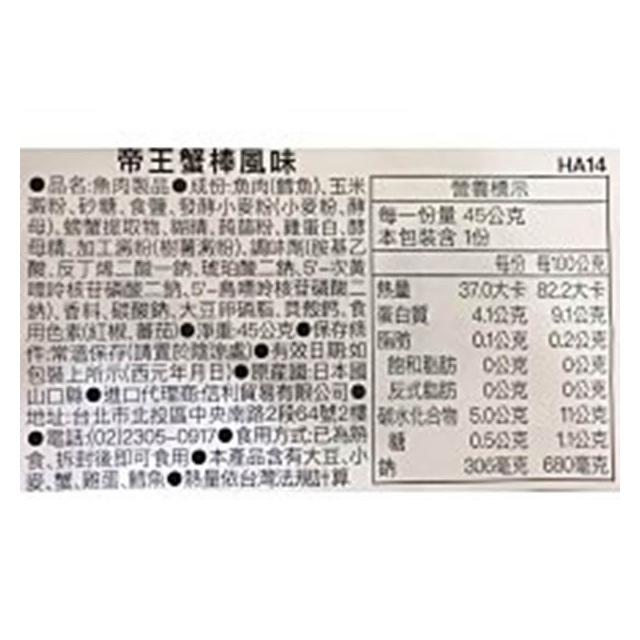 +爆買日本+ 山九水產 帝王蟹肉棒 45g 真空蟹肉條 魚漿製品 即食 辦公室必備 海鮮零食 下酒菜 日本原裝