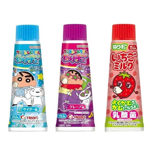 +爆買日本+ Heart 蠟筆小新 牙膏口香糖 葡萄味/檸檬萊姆味 乳酸菌草莓牛奶口味 30g 管狀口香糖 泡泡糖