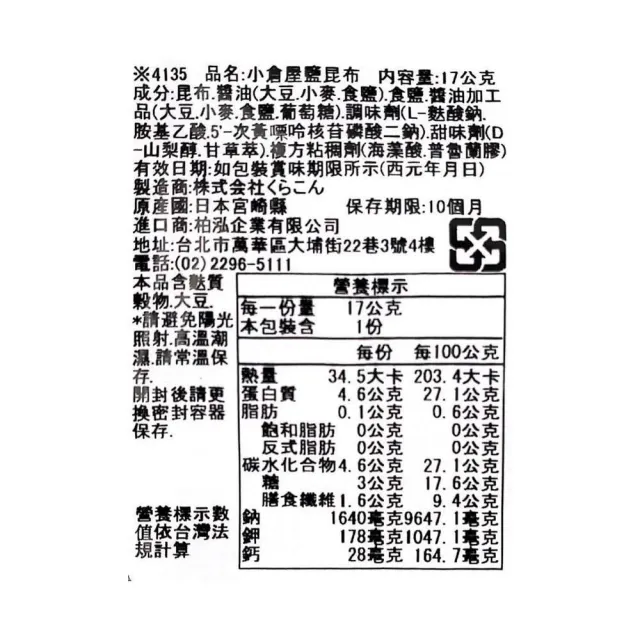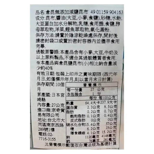 +爆買日本+ (特價)小倉屋 倉昆 塩部長 鹽昆布 無添加減鹽昆布 梅昆布 鮭魚昆布 北海道產 Kurakon