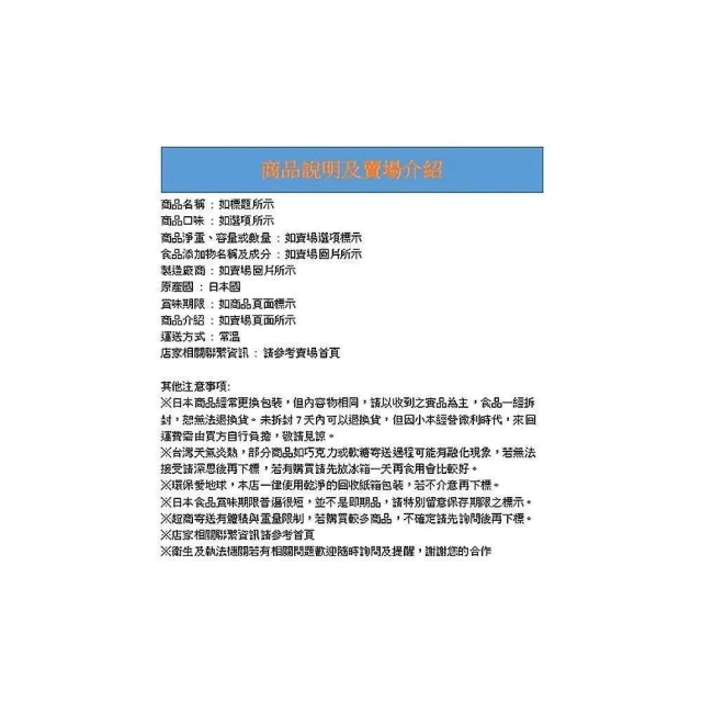 - 本公司對於所販售具遞延性之商品或服務,消費者權益均受保障。如因商店無法提供商品或服務,請與本公司聯繫辦理退貨或換成等值商品。