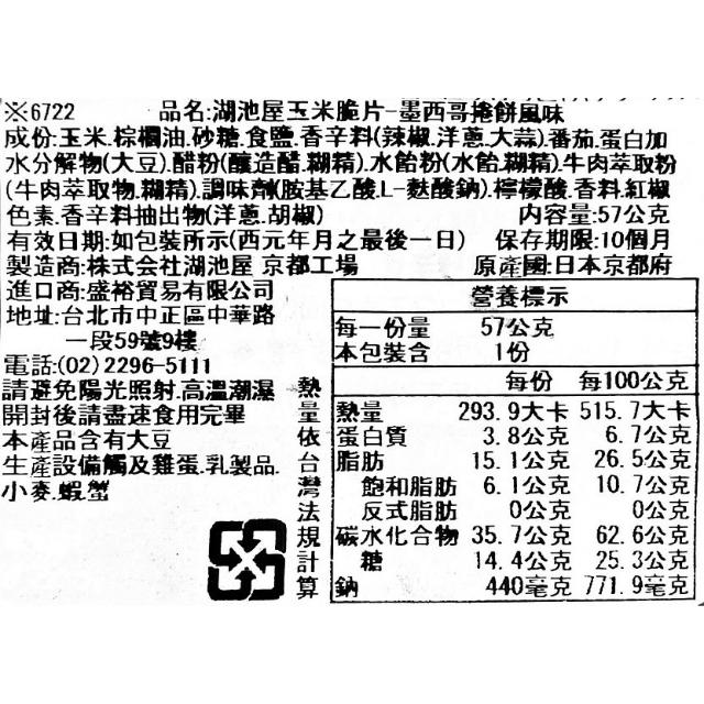 KOIKEYA 湖池屋+爆買日本+ 玉米脆片 57g 墨西哥捲餅/起司捲餅風味 玉米片 玉米餅乾 日本原裝進口