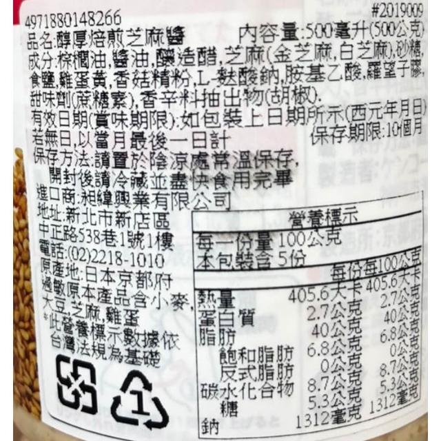 Kenko+爆買日本+ 醇厚焙煎芝麻醬 500ml 金胡麻調味料 日本製 沾麵醬 配醬 麵醬 拌麵用醬 日本進口