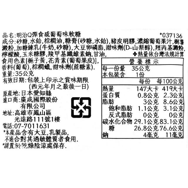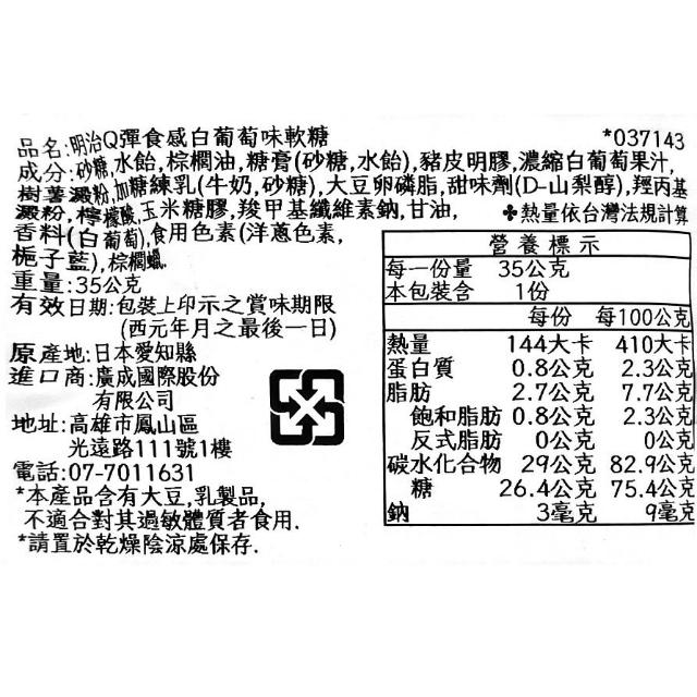 Meiji 明治+爆買日本+ meigum 明治 Q彈食感軟糖 35g 葡萄/白葡萄風味 夾心水果軟糖 彈力食感 麝香葡萄 日本進口