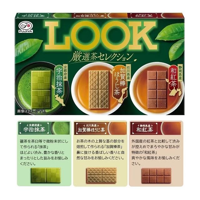 不二家+爆買日本+ FUJIYA LOOK 嚴選茶賞可可 9粒入 夾心可可塊 宇治抹茶/加賀棒焙茶/和紅茶 日本進口