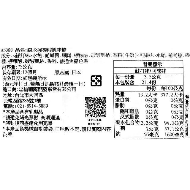 森永製+爆買日本+MORINAGA 強碳酸 雙味汽水糖 75g 硬糖 蘇打/可樂 夾心糖 強炭酸 日本原裝進口