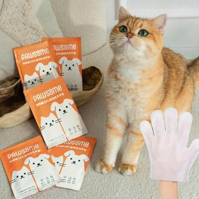 PAWSOME|玻尿酸SPA嚕嚕手套 寵物免洗手套/寵物清潔手套/貓洗澡手套/貓免洗/狗免洗