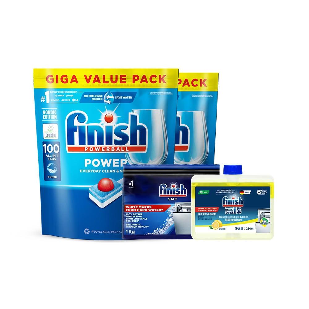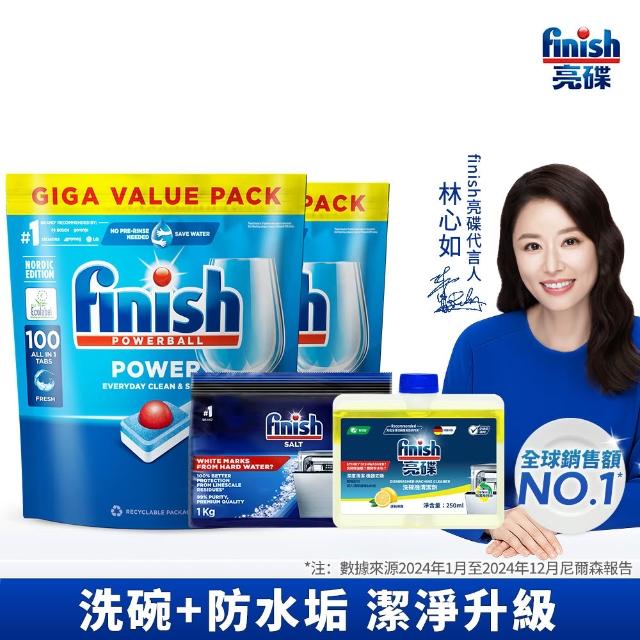 finish 亮碟洗碗機專用 全效合一洗碗塊100顆 x2+軟水鹽1kg+機體清潔劑250ml