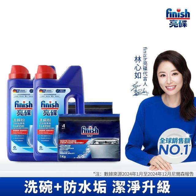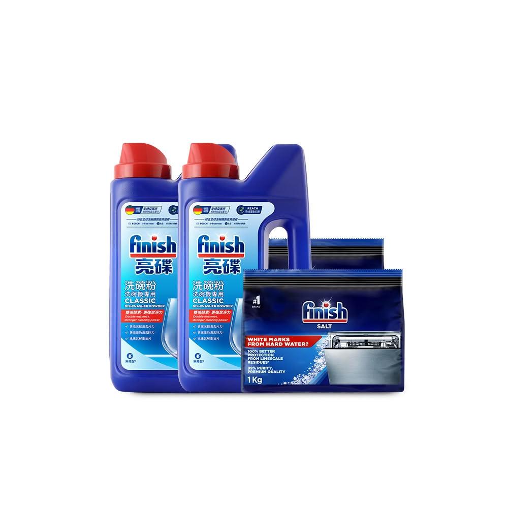 finish 亮碟洗碗機專用洗碗粉1kg x2+軟水鹽1kg x2