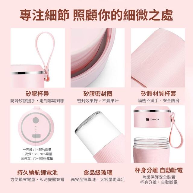 mimax 米覓便攜式果汁機 純銅電機 六葉刀頭 食品級 方便攜帶 榨汁杯 長續航鋰電池 玻璃杯