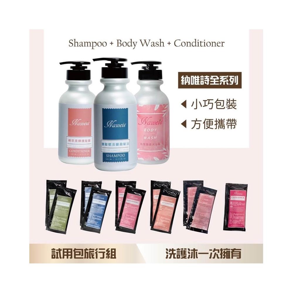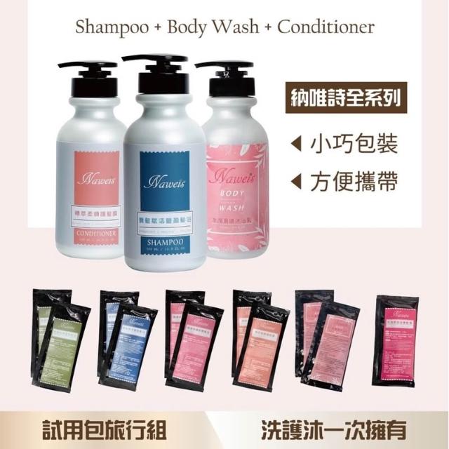 Naweis洗髮精試用包 旅行組 髮浴旅行組 護髮膜 養髮賦活豐盈 控油抗屑蓬鬆 洗髮精旅行組 納唯詩 沐浴乳試用包
