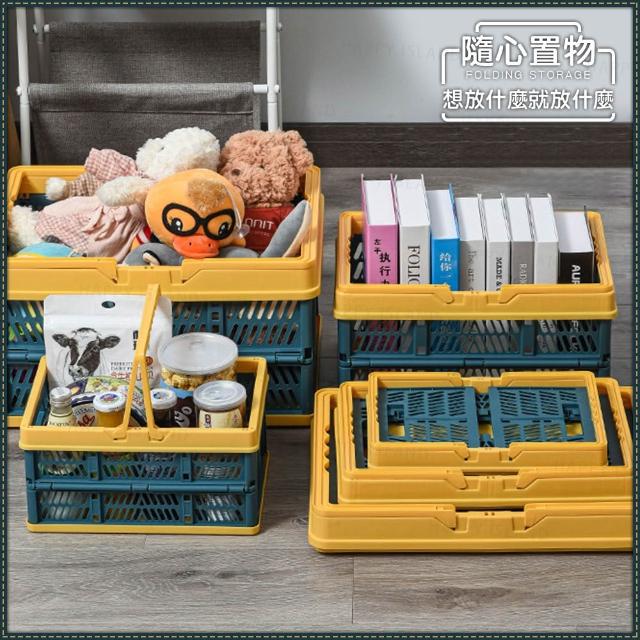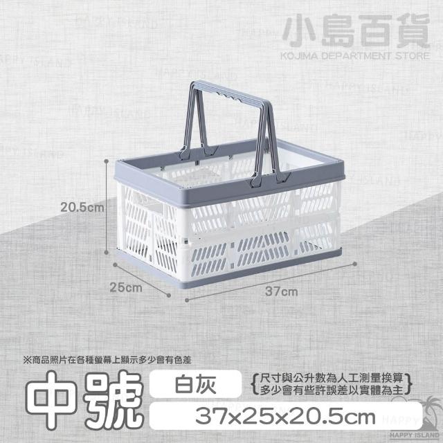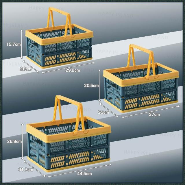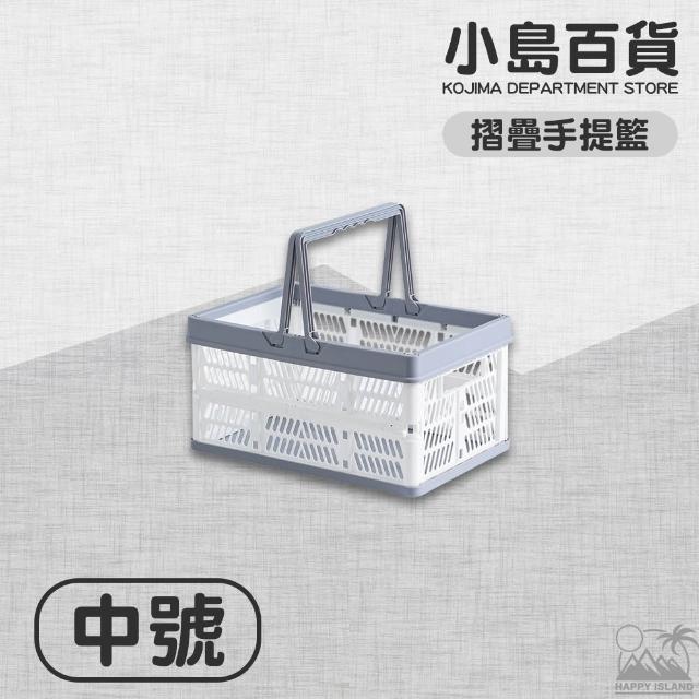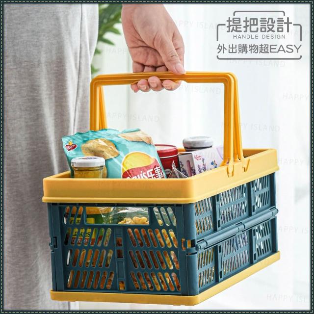 〔小島百貨〕中號 折疊手提籃 宅配賣場 收納籃 收納箱 拼色 野餐籃 菜籃 置物籃 折疊收納箱 購物籃 手提籃 提把折疊籃