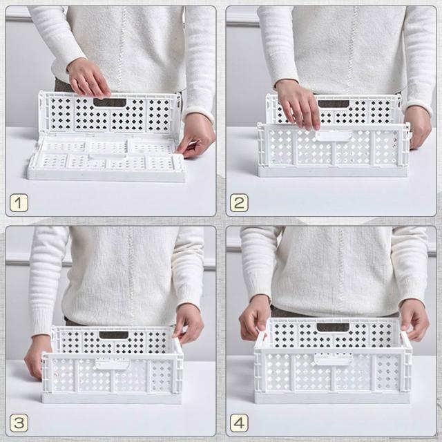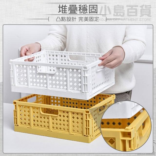 〔小島百貨〕小號 折疊置物籃 收納籃 收納箱 拼色 多功能 野餐籃 桌面收納籃 文具收納 堆疊收納 置物籃 摺疊收納箱