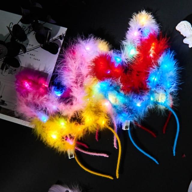 〔小島百貨〕發光髮箍 LED 毛絨 羽毛 兔耳 七彩髮箍 發光 派對用品 蹦迪 發光手環 眼鏡 奶嘴 扇子 蹦迪商品