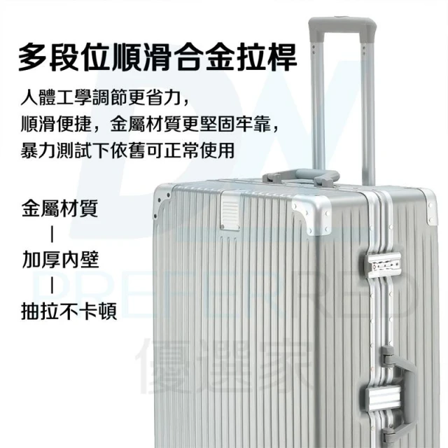 DW優選家 輕奢款 復古行李箱 鋁框行李箱 29吋 復古拉絲 鋁框箱 旅行箱29吋 旅行箱男 亁濕分離內襯 銀色行李箱