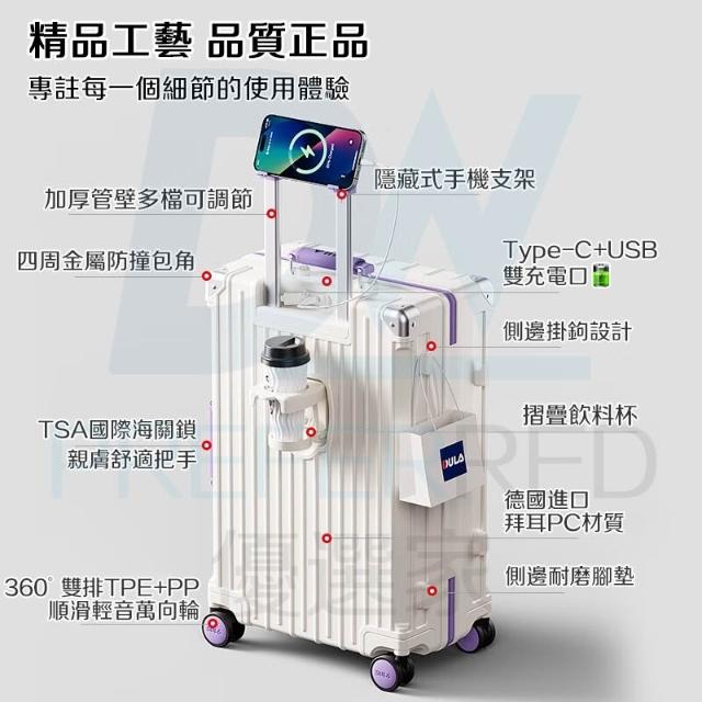 DW 優選家高階旅行箱 純PC行李箱 超輕行李箱 行李箱29吋 紫色行李箱 TSA海關鎖丨飲料杯丨雙充電口 拉桿箱 旅行箱 兩年保固