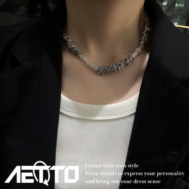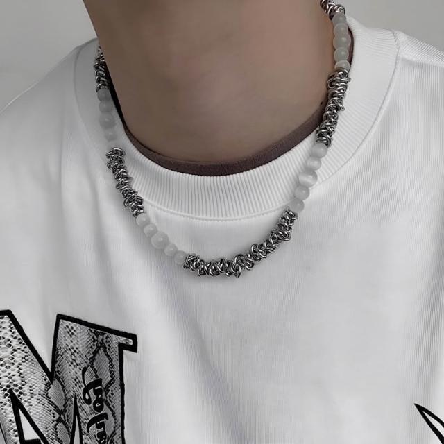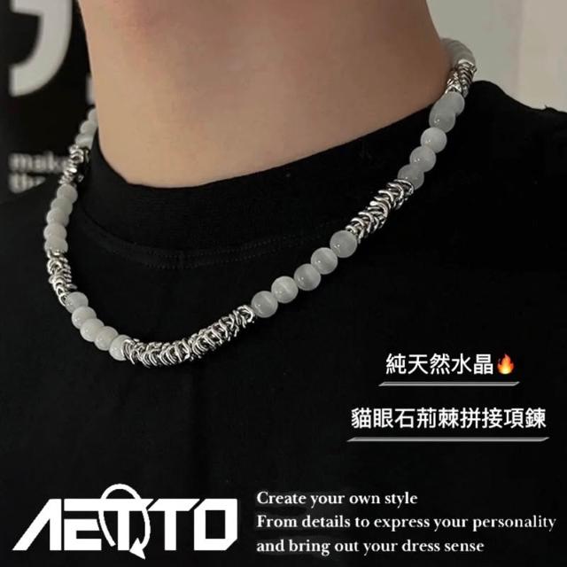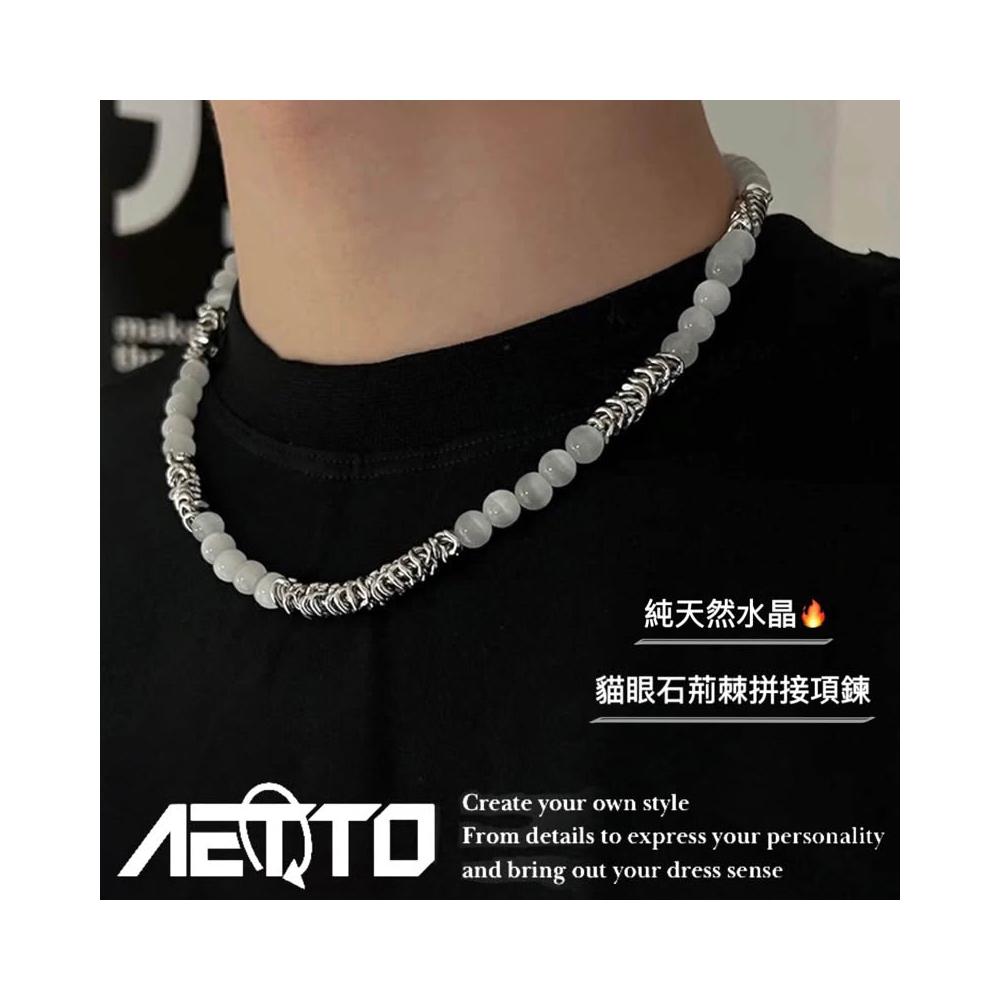 𝑨𝑬𝑻𝑻𝑶 貓眼石荊棘項鍊 高級感 天然水晶 淨化石 磁場 串珠 項鍊 鈦鋼項鍊 男生項鍊 女生項鍊 男生飾品 水晶項鍊