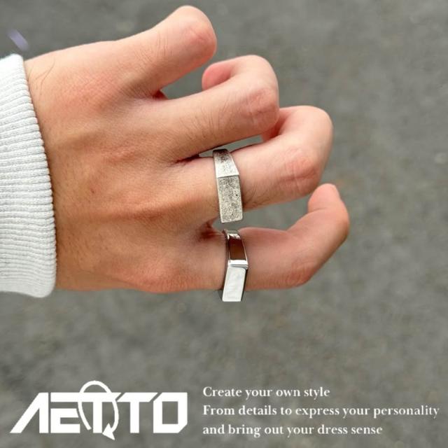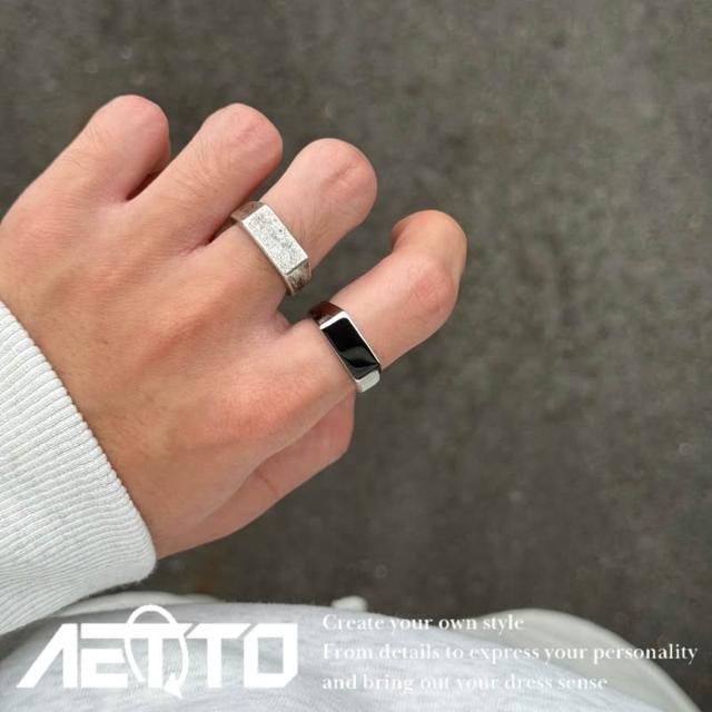 𝑨𝑬𝑻𝑻𝑶 韓版長方戒指 純鋼印戒 精緻做工 個性風 戒指 鈦鋼戒指 鋼戒指 男女對戒 情侶戒指 男生戒指 女生戒指