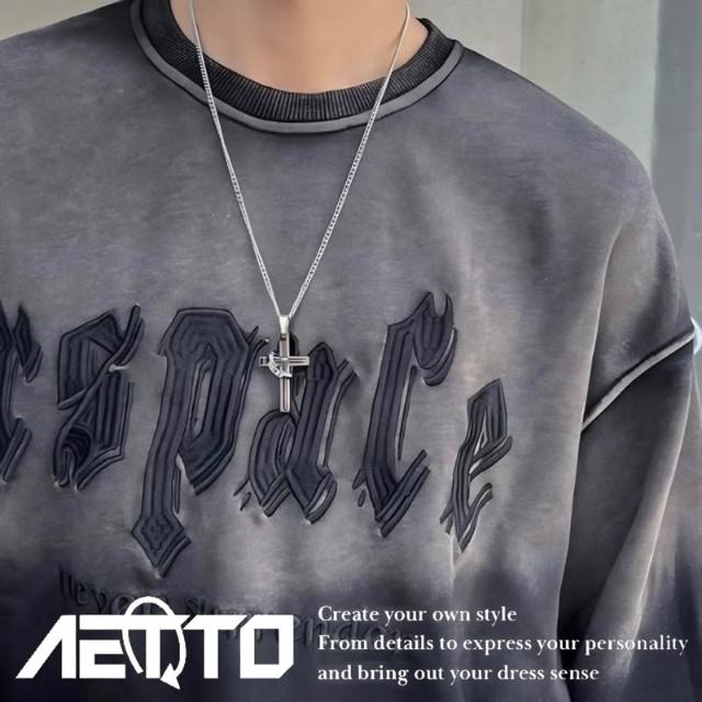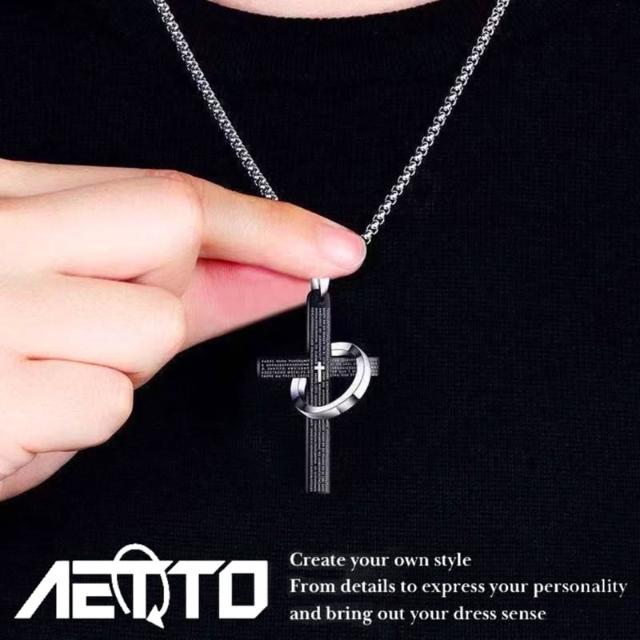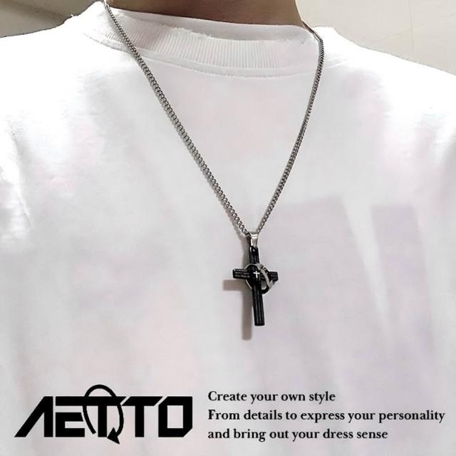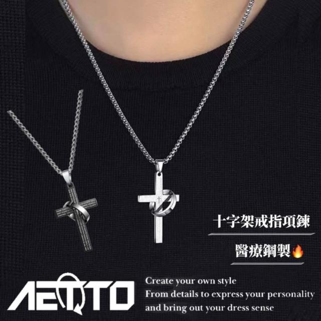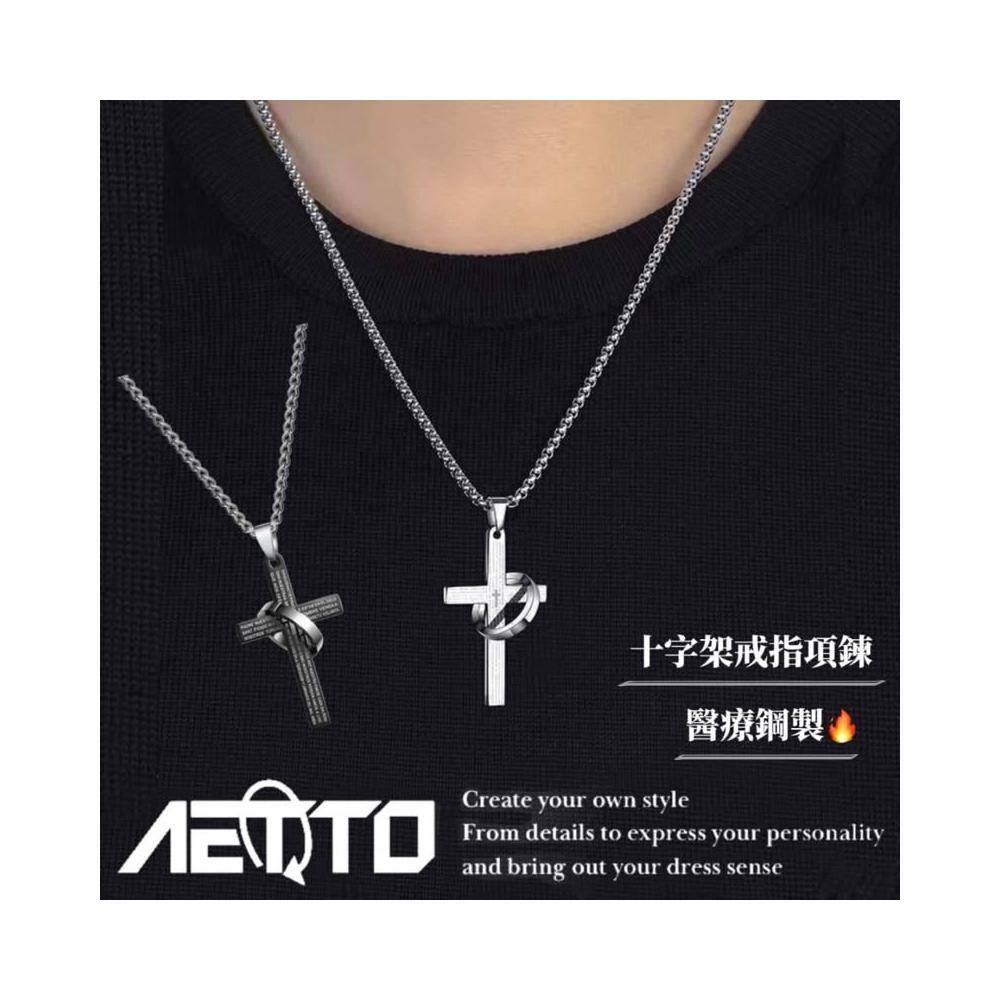 𝑨𝑬𝑻𝑻𝑶 十字架戒指項鍊 黑銀兩色 醫療鋼 簡約 基礎款 十字架項鍊 項鍊 鈦鋼項鍊 鋼項鍊 男生項鍊 女生項鍊 飾品