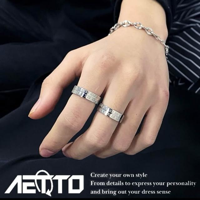 𝑨𝑬𝑻𝑻𝑶 羅馬數字轉動戒指 可旋轉 醫療鋼 簡約百搭 男女可戴 戒指 男生戒指 女生戒指 鈦鋼戒指 醫療鋼戒