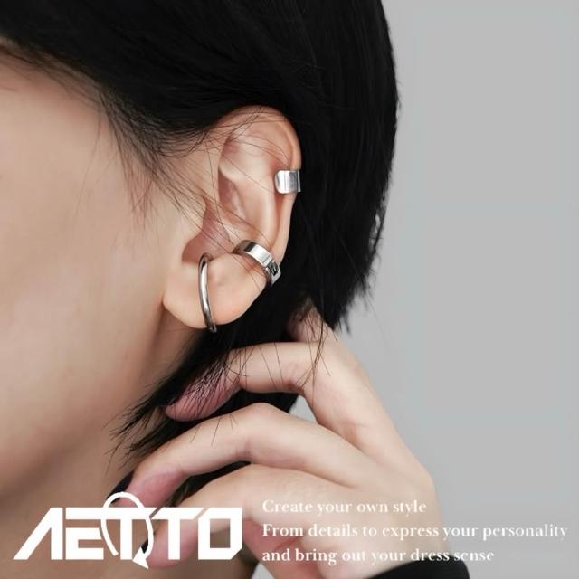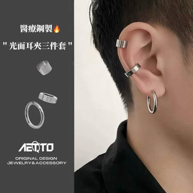 𝑨𝑬𝑻𝑻𝑶 光面耳夾三件套 黑銀兩色 簡約 百搭 醫療鋼 耳環 耳環組 無耳洞可戴 耳夾 耳骨夾 男生耳環 女生耳環