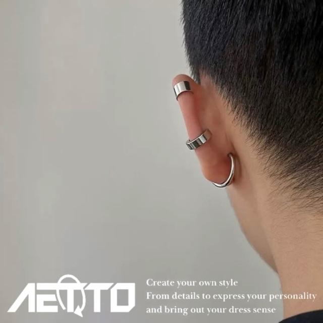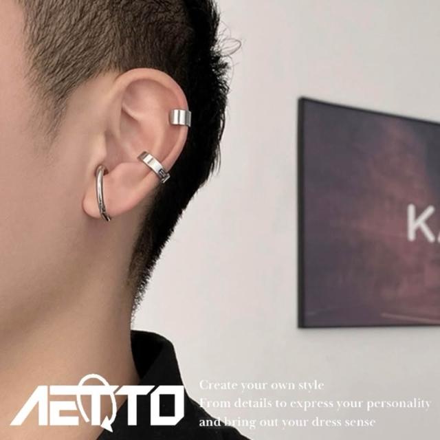 𝑨𝑬𝑻𝑻𝑶 光面耳夾三件套 黑銀兩色 簡約 百搭 醫療鋼 耳環 耳環組 無耳洞可戴 耳夾 耳骨夾 男生耳環 女生耳環